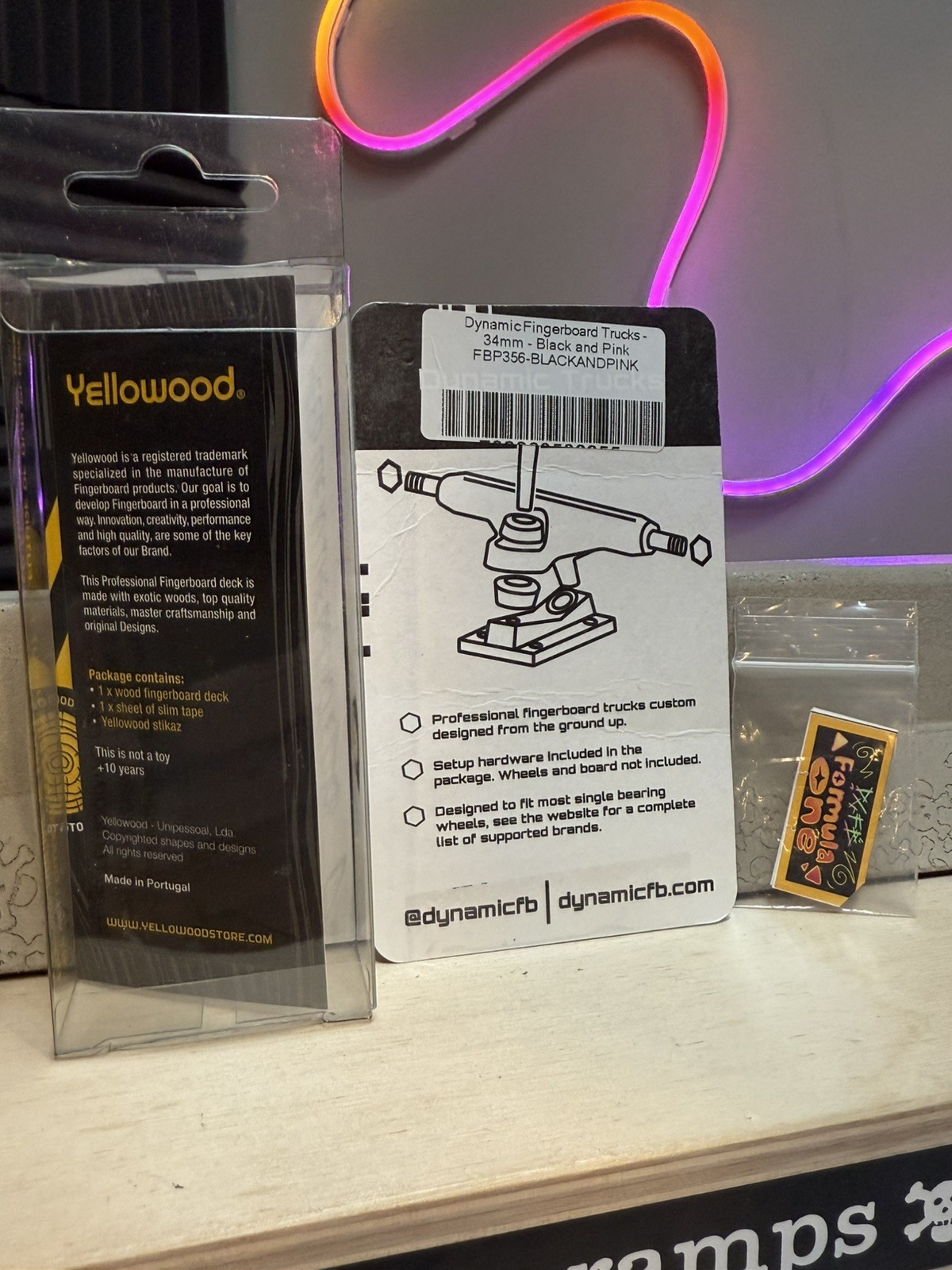Yellowood Fingerboard Hula Complete | Dynamic Trucks | Dude Guy FB Wheels UAG* Yellowood Hula Fingerboard Deck ( Light Use )* Dynamic Black / Pink Trucks ( Light Use )* Dude Guy Formula 1 Jahaqua ( New )* UAG Fingerboard Tape ( Used ) - We will provide a new sheet of tape as well -- Feel free to reach out and ask questions! - Offers are welcome, have a great day!