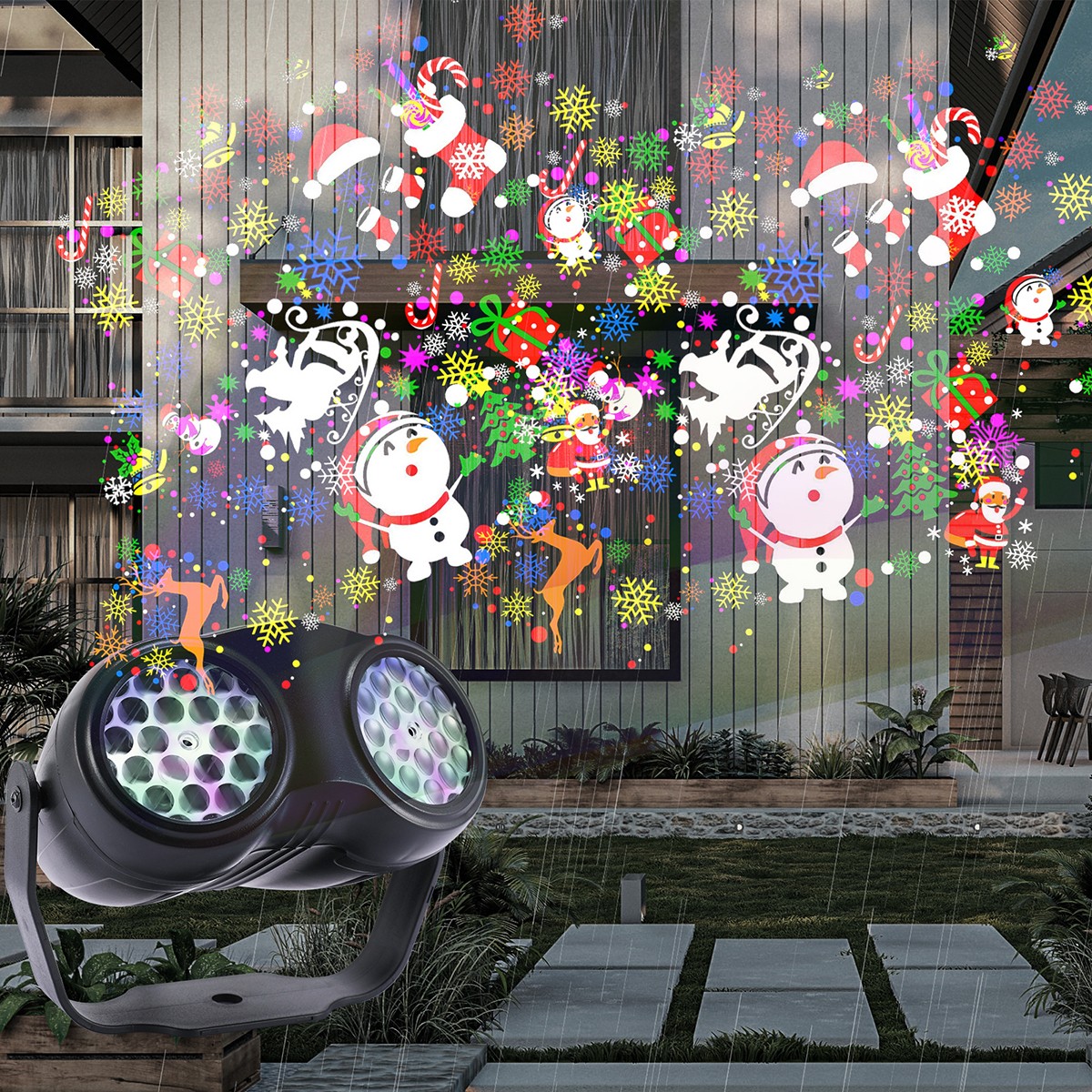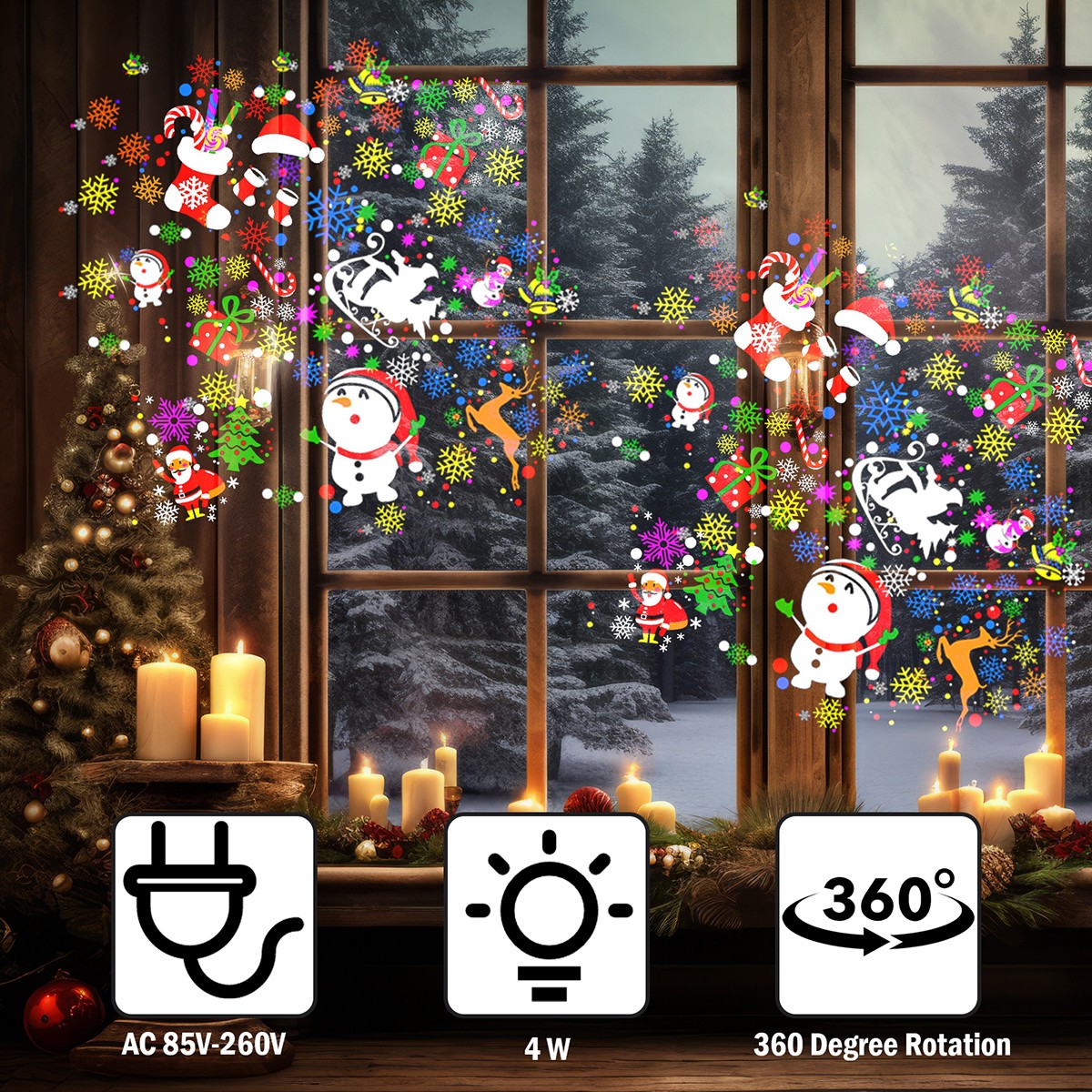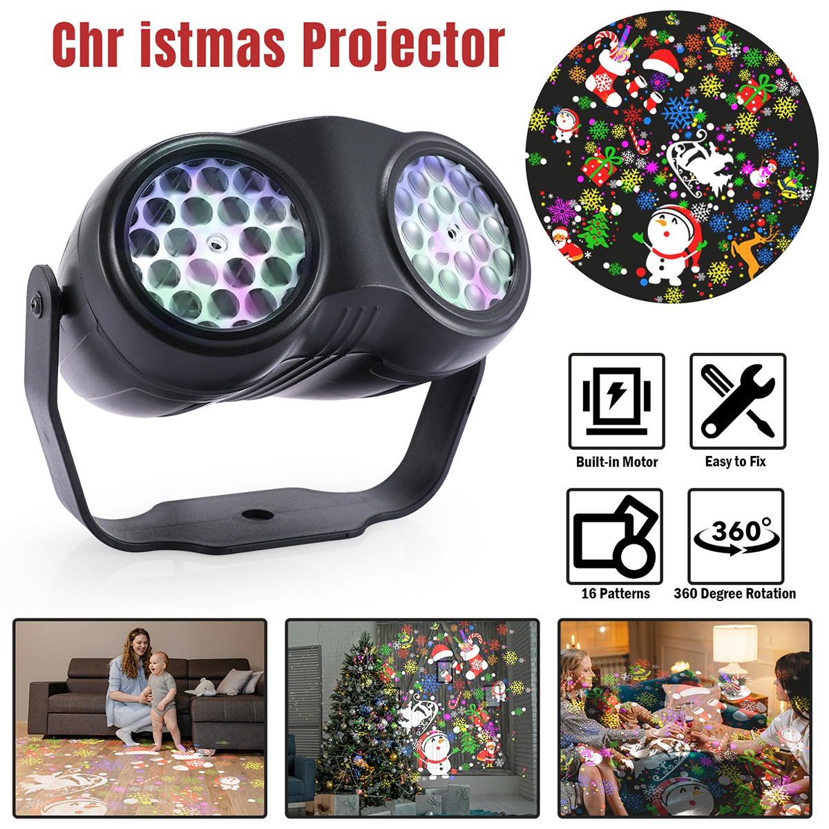 Christmas Snowflake Projector Outdoor LED Moving Snowfall Laser Light Landscape Features:【16 Patterns Projector Lamp】--- There are 16 kinds of Christmas projector patterns which include snowman, Santa Claus, Xmas Tree, reindeer, Christmas bell, Christmas stocking, etc.【360° Rotation Christmas Projector Lights】--- The Christmas Projector Lights has 360 degrees rotatable universal support, the projection angle can be freely adjusted. The rotating LED projector Christmas lights can be hung on the wall or placed on the ground.【Portable Christmas Projector Lights】--- Made of high quality engineering plastics, integrated molding, durable in use. The